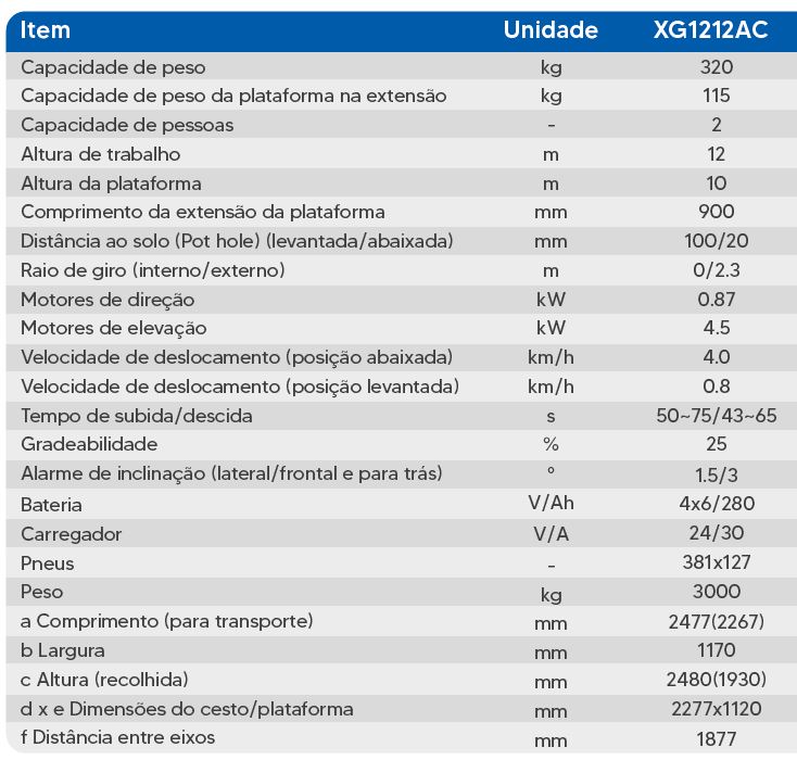 Altura máxima de trabalho: 12,00 metros